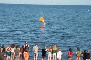 Am Strand gab es die Stranddisco mit DJ-Reilix. Ein paar Mädchen tanzten fast ohne Ende zur Musik. Doch als dann der Piratentanz lief, tanzten fast alle mit. Seit einigen Jahren ist das unser Lied hier in Lenste. Immer wenn es irgendwo gespielt wird, tanzen fast alle mit. Diesmal wurde nicht nur im Sand an Strand getanzt. Nein! Auch im Wasser tanzten die eingefleischten Lenste-Fans mit.