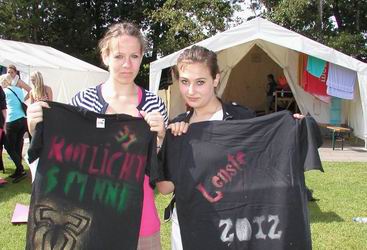 Dorf 8 gestaltet sich ein eigenes T-Shirt als Erkennungszeichen. Damit wird die Gemeinschaft zwischen den Zelten 30 bis 34 besiegelt.