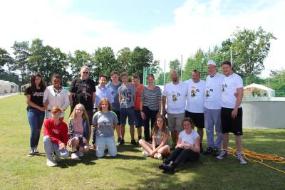 Einige bleiben immer Zeltbetreuer, andere probieren den ein oder anderen Bereich aus. So hat Higgens oder ach Holger Wrede, über viele Jahre Zelte betreut und ist ein Jahr in der Animation gewesen, in dem er seine Anerkennung zum staatlich anerkannter Sozialpädagogen gemacht hat. Seit einigen Jahren ist er nun in der Freizeitleitung. Er ist jetzt seit 25 Jahren mit bei den Freizeiten von FaBS. Lennart ist ebenfalls erst Betreuer gewesen und nun seit einigen Jahren in der Animation. Er ist nun schon seit 10 Jahren mit in dem ehrenamtlichen Team. Und bei Andreas, damit die Teilnehmer auch wissen um wen es geht, sein Spitzname lautet Gotscha, sind die Aufzeichnungen über seine Teilnahme unterschiedlich. Er wurde für 20 Jahre ehrenamtliches Spontanengagement geehrt. Sein Erscheinen ist immer etwas überraschend, da es eher selten ist, dass er auch eine Anmeldung als Betreuer abgibt ;-). Marcel aus der Küche wurde in diesem Jahr auch für sein unermüdlichen Engagement für uns aus dem Küchenbereich geehrt. Heute wurde die Ehrung der Langjährigen von Frau Dr. Hanke, der Braunschweiger Sozialdezernentin, und von Fucky, dem Freizeitleiter, vorgenommen. Auch Herr Albinus, Amtsleiter des Jugendamtes Braunschweig, und Herr Geismar, Stellvertretender Abteilungsleiter der Jugendförderung Braunschweig, waren bei den Ehrungen anwesend. Es wurde neben dem Dank ein T-Shirt überreicht. Diesmal war es in einem Design, dass unser Fucky als Freizeit T-Shirt ausgewählt hatte. Dies wurde aber leider nicht so wie er erwartet hatte gedruckt. Die Betreuer hatten Fucky einen Streich gespielt und etwas an seinem Layout gebastelt. er musste aber im Nachhinein zugeben, dass das Überraschungs-T-Shirt sehr gelungen ist. |