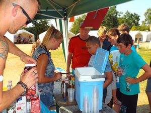Wann hat man so was schon mal erlebt? Cocktail für die Teilnehmer in Lenste an der Cocktail-bar. Hannah-Tattoos und Wasser im Pool. Wir können schon fast mit einem 5 Sterne Hotel mithalten. Alles war da, selbst das Meer mit Sandstrand mit dem berühmten strahlend blauen Himmel ist in der Nähe. Das kann vielleicht so manches Hotel auf Ibiza kaum mithalten. Vielleicht... Die Kinder waren jedenfalls begeistert.