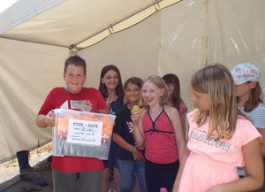 Dorf 6 war heute zu einer Deichrutsche in der Nähe des Segelclubs. Dann kündigte sich mehr und mehr der Regen an. Bei den ersten Regentropfen machten sich die Teilnehmer gerade auf den Rückweg. Dann gab es noch eine kurze Regenpause. Und dann legte der Regen ganz ordentlich los. Bis zum Abend gab es einige Schauer, so dass die Wegstrecke für die Nachtwanderung der großen Teilnehmer ins Wasser fiel. Die Wege, die die Jugendlichen laufen sollten waren so verschlammt, dass die Nachtwanderung abgesagt wurde und dafür ein Kinofilm in der Kongo gezeigt wurde.