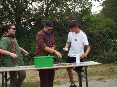 Bei den Ältesten auf dem Sixpack war heute Showtime! Die Teilnehmer durften sich über den Tag hin eine Show für ihre Betreuer ausdenken. Die Premiere war dann am Abend auf dem Platz des Sixpacks. Jedes Zelt zeigte, was sie so drauf haben. Es gab spannende Quiz mit dem Publikum. Aber ein Zelt hatte auch zwei Teilnehmer aus dem letzten TV-Event eingeladen. Sie mussten hier vor Ort die letzte Prüfung bestehen. Leider wurde einer offensichtlich verletzt, als er einen der Sterne versuchte aus dem Gebräu zu ziehen. Glücklicherweise war ein Arzt sofort zur Stelle. Er konnte ihn schnell verbinden und hatte sogar ein Schlaganfallpflaster mit parat, als einer der Betreuer vor lachen fast vom Stuhl fiel.