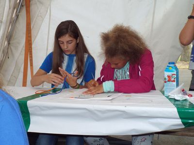 An den Tagen, an denen es regnet, ist das Zelt, das wir jedes Jahr vor der Animation aufstellen, ein Geschenk. Hier und auch in der Bastelbude, können die Kinder und Jugendlichen Basteln und Malen und, und, und. Freuen Sie sich auf das, was Ihre Kinder vielleicht an selbstgebasteltem mit nach Hause bringen. In diesem Zelt findet in der Mittagspause auch des Öfteren ein Malwettbewerb statt.
