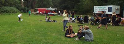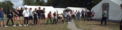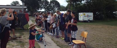 Nachdem es heute Vormittag Aktionen gab wie zum Beispiel Bogenschießen, Simon Says, Basteln in der Bastelbude oder Stränchenfärben mit Haarkreide, war am Nachmittag Großaktion angesagt. Für die Dörfer 1 bis 3 fanden Aktionen auf den Platz statt, während es für die Dörfer 4 bis 6 eine Rallye nach Cismar gab. Der Sixpack schickte seine Teilnehmer auf eine Fotorallye, die auch in Cismar endete. Denn schließlich war heute Grillen für alle. Die kleineren Teilnehmer waren dafür auf dem Zeltplatz und die größeren auf einem Spielplatz in Cismar.